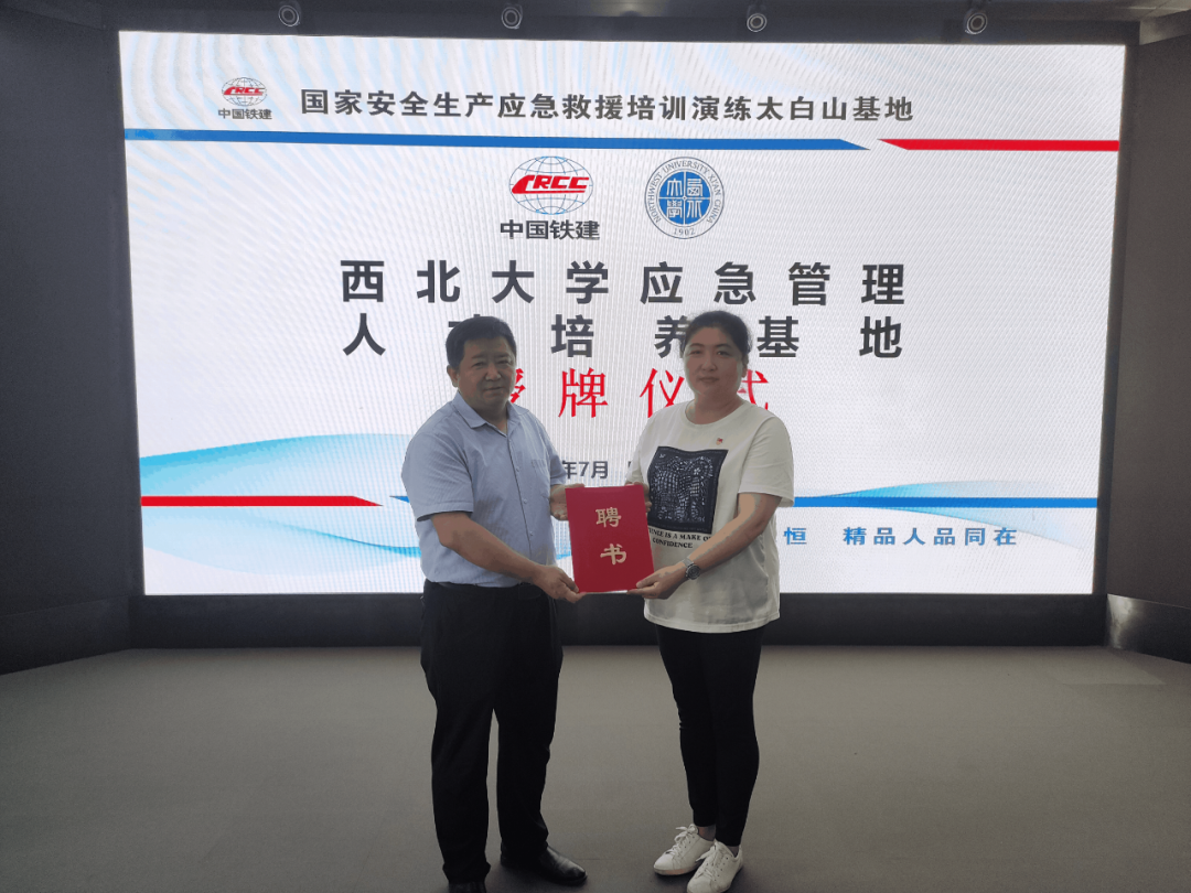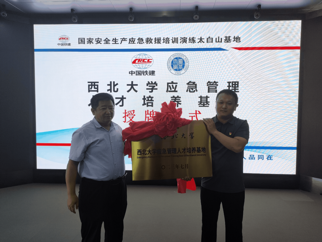 会上,与会成员集体观看了安全生产应急救援宣传片。中铁二十局技工学校党总支书记、校长杨鹏演同志对国家安全生产应急救援培训演练基地进行了简要介绍,他指出基地作为产教融合的重要载体,未来将持续深入探索“理论+实操”的定点式服务,大力推动校企合作双向赋能模式。565net必赢党委副书记韩杰同志和基地负责人杨鹏演同志共同为西北大学应急管理人才培养基地揭牌,并向杨鹏演同志颁发“西北大学公共管理硕士行业导师”聘书。最后,学院党委书记窦争光同志做总结讲话,他表示,此次会议是565net必赢推动“产教融合、校企合作”人才建设迈出的关键一步,双方将通过协同育人、双向互动,共同建设应急安全领域“双师型”教师培育及创新型复合型应用型应急人才培养,期望与国家安全生产应急救援培训演练基地开展产学研一体的深度合作,以促进双方携手共进、合作共赢。