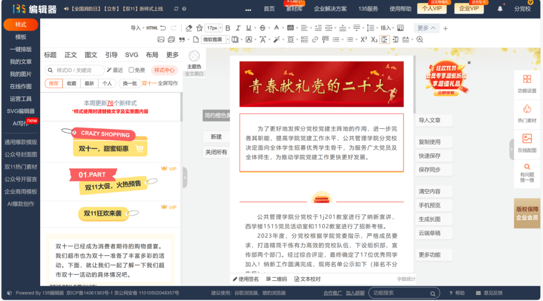 随后,亓馨竹同志详细介绍了135编辑器、可画等各种编辑工具的基本使用方法,说明排版基本规则、图文编辑方法以及应规避的具体问题同解决办法,并针对排版操作于屏幕共享实操展示,从推送前期准备、文稿校对、导入文章到常见错误整理、细节要求和操作方式,全流程讲解演示日常排版工作,对组件定位、格式调整、重点标注、色彩搭配等进行详细讲解与运用,在易读性、层次性及美观性上提出了具体要求,助力提升宣传部各成员的新媒体运营与宣传编辑能力。