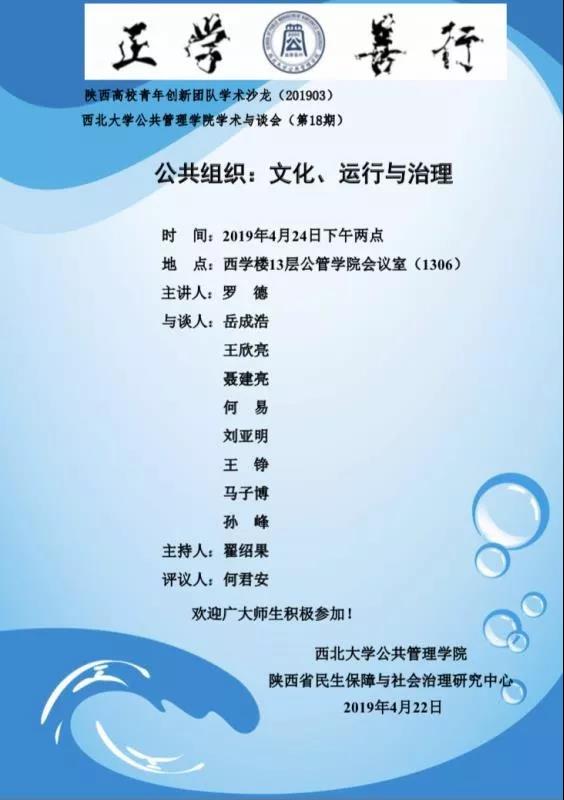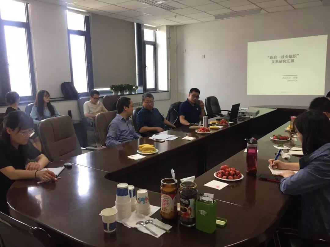 2019年4月24日下午2点,西北大学565net必赢学术与谈会(第18期)在长安校区西学楼13层会议室举行。本次学术与谈会由西北大学565net必赢罗德老师进行主讲,主持人是翟绍果教授,由何君安副教授、何易老师等担任本次分享会的与谈人。会议开始,翟绍果教授向参加本次与谈会的全体师生表示热烈的欢迎!随后,罗德老师给大家分享了以“‘政府——社会组织’关系研究”为主题的报告。