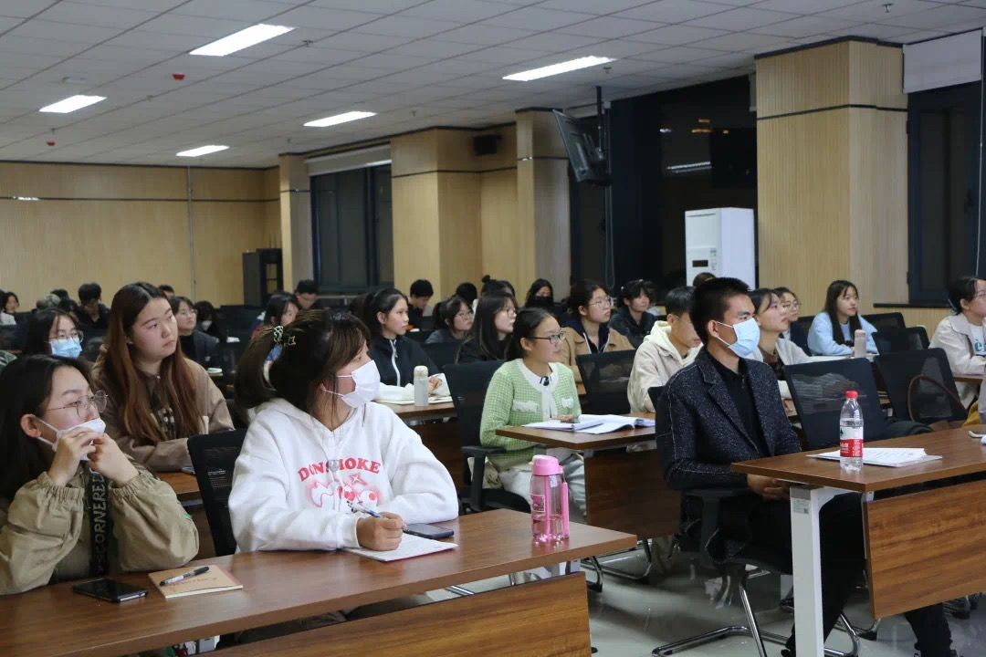 2021级心理委员优秀代表贺靖雯重点介绍了心委的工作职责、工作重难点、工作中的沟通交流技巧等,并结合个人实例生动地阐明了心委在日常工作中的重点注意事项。她强调心理委员应高度重视同学们的心理健康,助力树立积极理性、健康向上的健康心态。做好同学们健康心理的“护航者”与“掌灯人”。