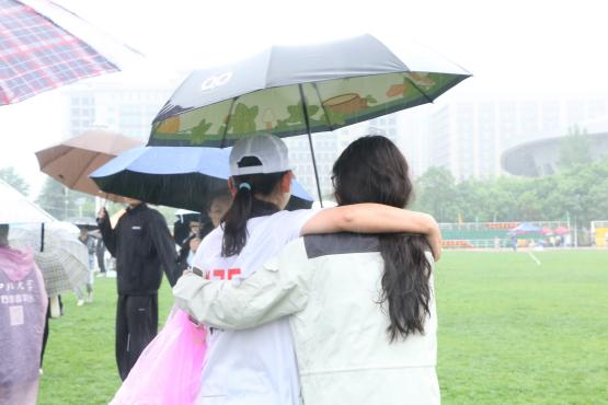 风雨中,同学们激情呐喊