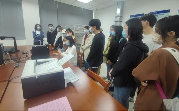 随后,韩馆长带领同学们前往馆内各室与库房。在二公局档案馆实习的2020级档案班的学长学姐们协同馆长一起为同学们介绍了各室各库房以及档案业务工作的相应流程。