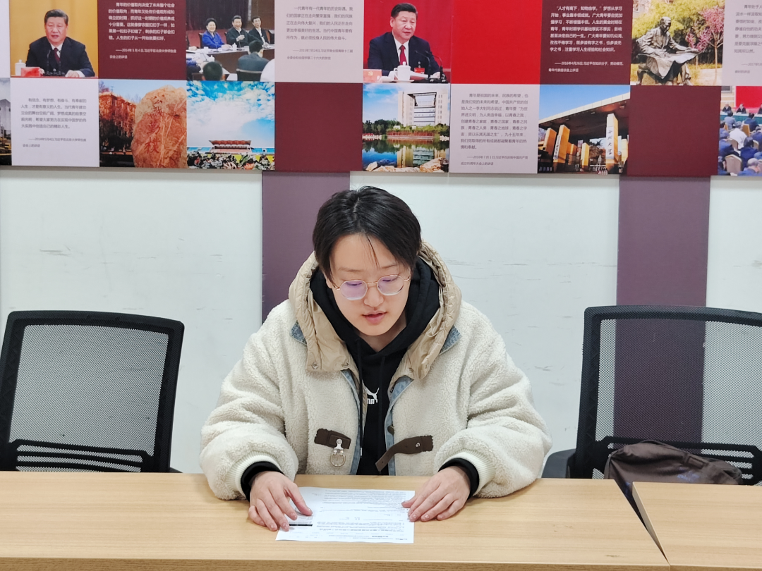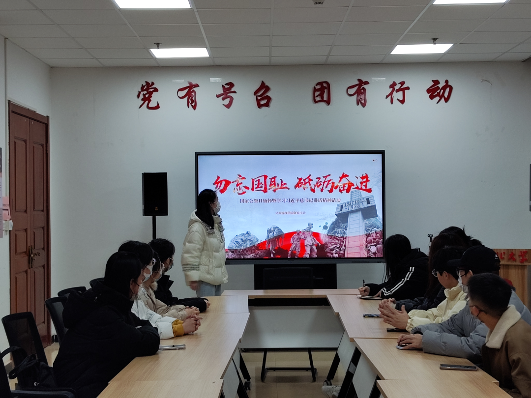 会议第四项,研究生会主席团成员权家乐领学习近平总书记在2014年南京大屠杀死难者国家公祭仪式上的讲话。