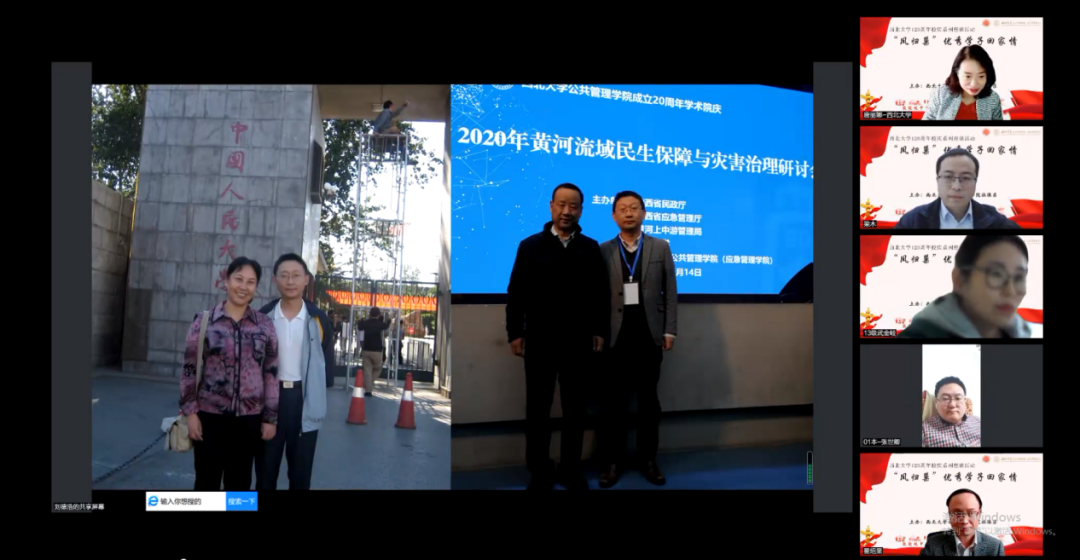 2022年10月15日下午14:00,为庆祝西北大学百廿校庆,西北大学565net必赢社会保障学系在线上举办了“‘凤归巢’优秀学子回家情”座谈活动,邀请了12名社会保障学系优秀毕业生分享在校学习、升学、求职及职场工作的经验。本次座谈会由系主任吴玉锋副教授主持,出席嘉宾有党委书记窦争光、院长雷晓康教授、社会保障学系部分教师以及部分在校生等。
