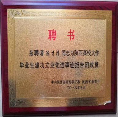 优秀毕业生举例:2014届公共事业管理专业毕业生陈才泽获得陕西省优秀大学毕业生建功立业先进个人称号;2014届行政管理专业毕业生蔺啸宇获得中陕核集团公司“青创先锋”称号等等。