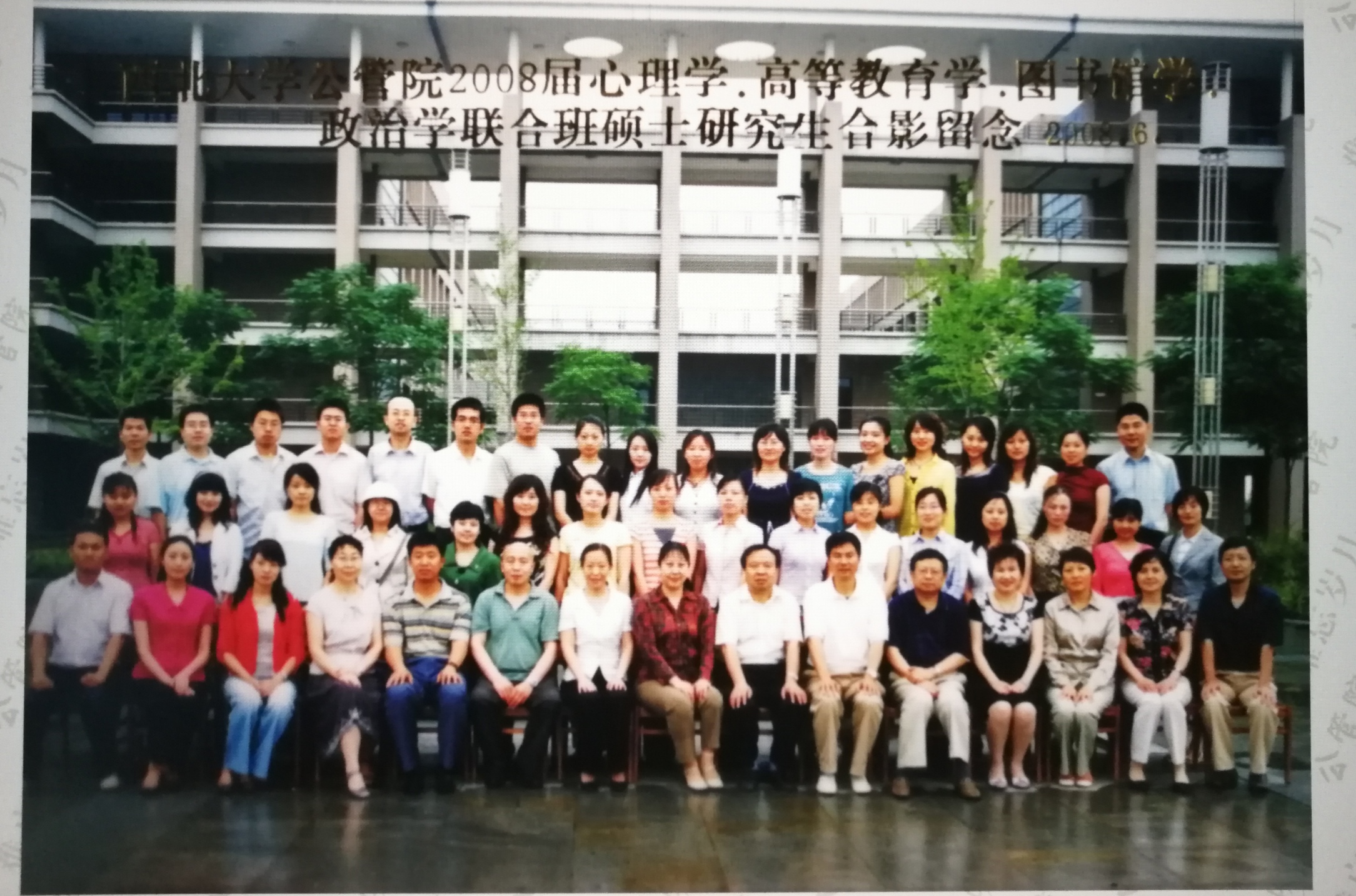 西北大学565net必赢2008届硕士研究生心理学、高等教育学、图书馆学、政治学联合班毕业合影