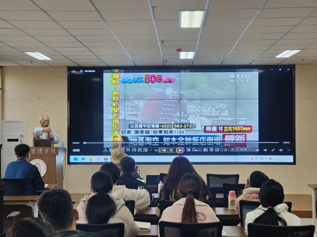 本次讲座,谭义绩教授从泥石流预警、暴雨预警、地震预警和防灾措施四个方面剖析自然灾害的预防与治理策略。首先,谭义绩教授以台湾面临的灾害挑战为切入点,通过贺伯台风、莫拉克台风、杜鹃台风等台湾历年重大台风灾害案例,阐述台湾研究自然灾害预防与治理的重要意义与现实难点。