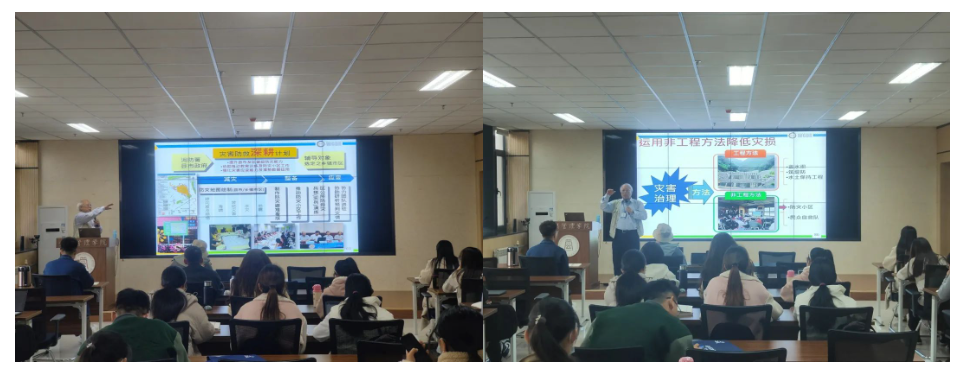 谭义绩教授深厚的学术功底以及独特的研究视角令在场师生印象深刻,他用图像动画演示和视频辅助讲解的方式直观形象地介绍了自然灾害发生的原因和经过,为我院师生在自然灾害预防与治理方面的学术研究提供了新思考、新视角。报告会对于深化我院相关研究与教学具有重要意义。