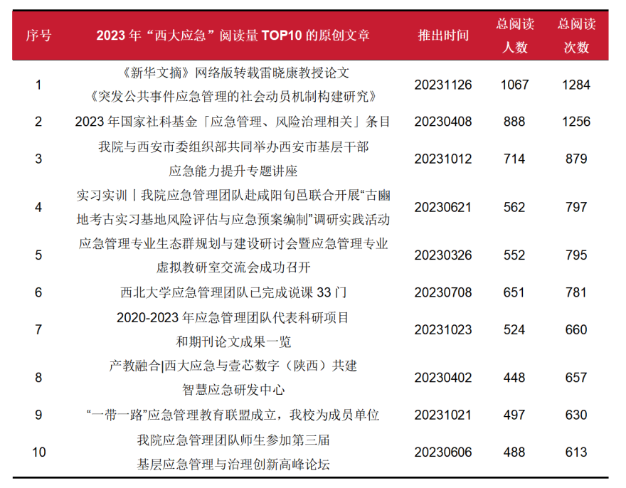 “数”说2023 | “西大应急”原创文章阅读量年度TOP10回顾