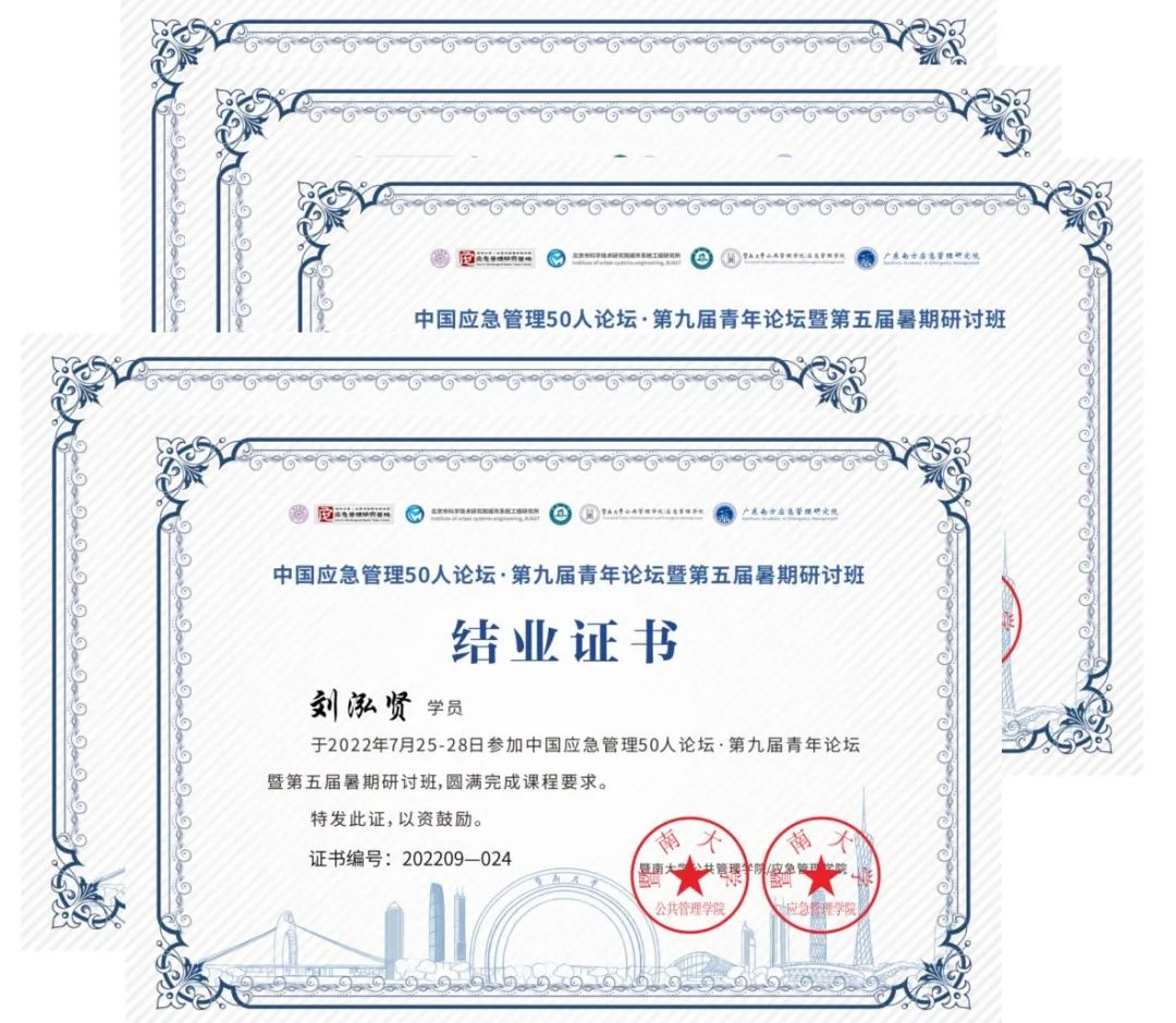 “风险治理与应急管理:机遇与挑战”中国应急管理50人论坛·第九届青年论坛于2022年7月25—27日面向青年教师、研究生、本科生开设为期三天的第五届暑期研讨班,主要在学术研究、实践进展、数据分析、论文撰写等方面邀请领域内著名专家学者出席指导。我院2021级博士研究生王国桥、2020级硕士成纪宏、牛琳、殷启洋、2021级应急管理硕士刘泓贤等五名研究生入选本次暑期研讨班并顺利结业。其中,2021级应急管理硕士刘泓贤所撰《议程设置模式下风险沟通能力提升:警惕、路径与抓手》一文被遴选出在论文点评交流会上进行交流。