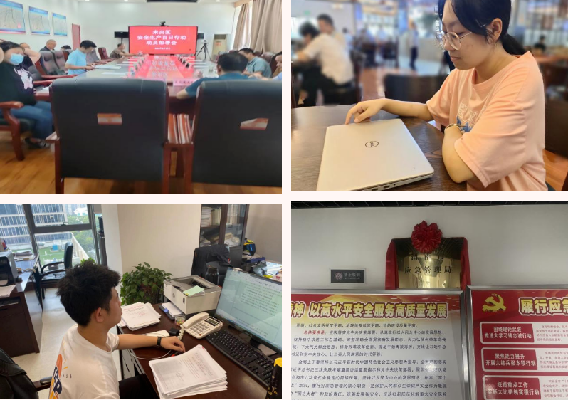 在见习中我听到科室老师们“啪啪”的打字声;“8.19蓝田暴雨”复盘会议各处老师们的忙碌;公众号上的“生命至高无上,安全责任为天”让我感受到“应急人”的责任;还有我在整理自2021年7月以来的活动照片过程中,了解到疫情防控、应急救援演练等很多方面都有应急管理局的身影。总之,见习不仅给我了专业学习的机会,同时也增强了语言运用和适应社会的能力,提升了对应急管理专业的使命感与责任感。作为“萌新应急人”,我们应该在平时生活中去关注安全生产与自然灾害,增强应对突发事件的能力,做到认真负责,以人为本。