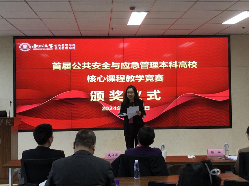 (夏保成、西北大学应急管理学院雷晓康院长为特等奖获得者颁奖)