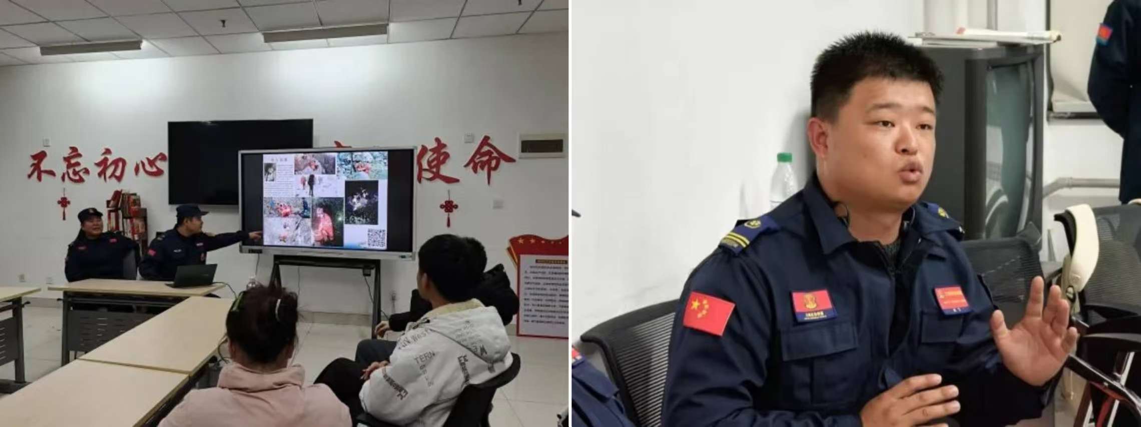 接下来,救援队老师详细介绍了呼吸道异物梗阻、中暑、创伤救护等常见意外情况的处理方法;针对陕西秦岭历年失联遇难案例分析户外活动中滑坠跌成重伤、盲目探险、缺乏野外生存常识和经验等安全隐患,提出了相应的预防措施;讲座分析了常见火灾发生的原因、电器电线火灾的特点以及扑救要领、火灾逃生的注意事项;三栖应急救援中心李佳峥老师通过问答形式介绍了地震的基本知识,分析了地震救援案例和地震灾害现场处置的方法,以及在室内外如何正确避震和自救。