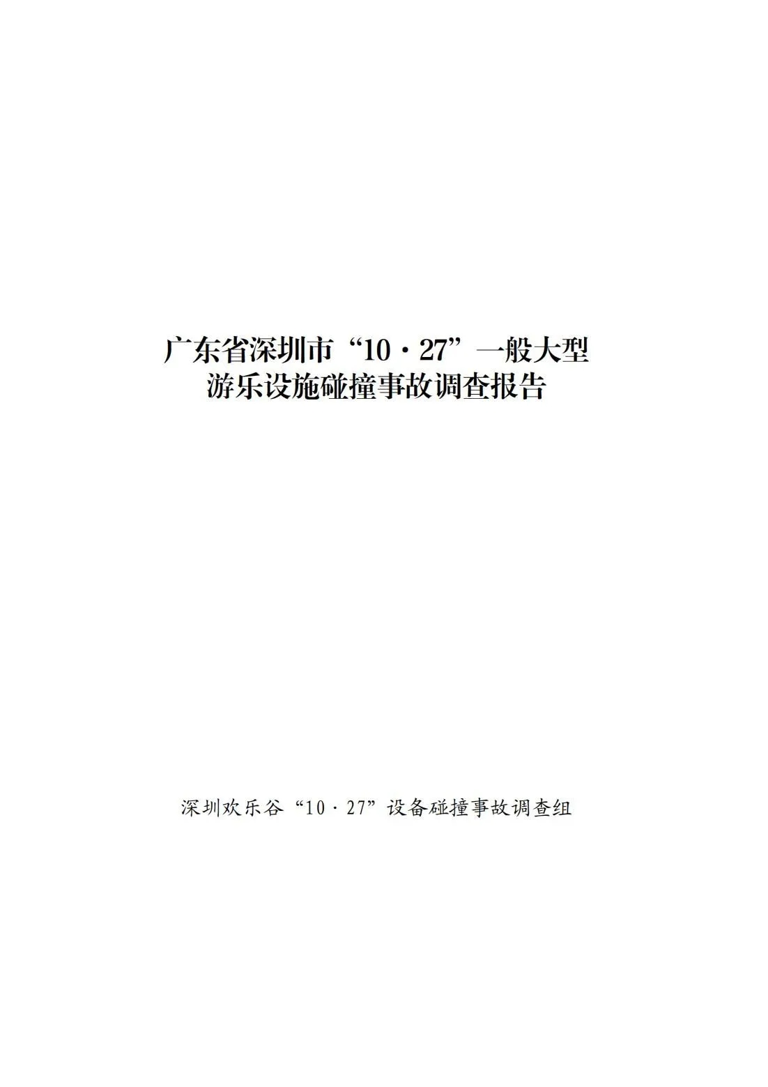 调查报告 | 广东省深圳市“10·27”一般大型游乐设施碰撞事故调查报告