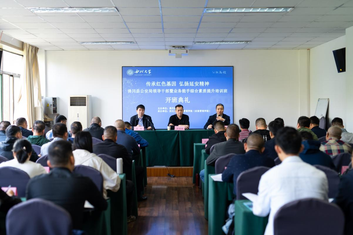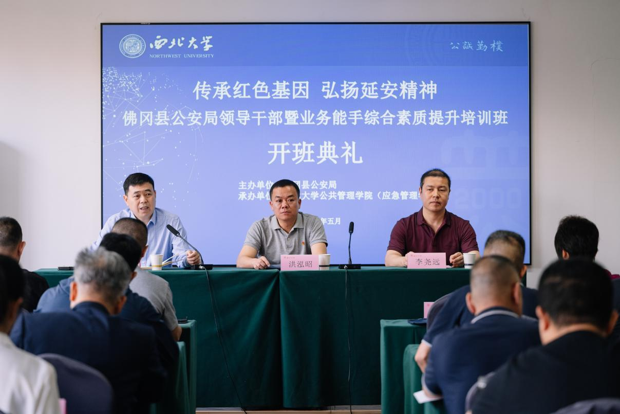2023年5月7日,由广东省清远市佛冈县公安局主办,我院承办的“传承红色基因 弘扬延安精神佛冈县公安局领导干部暨业务能手综合素质提升培训班”顺利开班,佛冈县副县长、县公安局党委书记、局长温建雄同志和佛冈县公安局党委副书记、政委洪泓昭分别出席了开班仪式。565net必赢客户端副院长李尧远出席两期培训班开班典礼。来自佛冈县公安系统的89名同志在西北大学(太白校区)参加培训。
